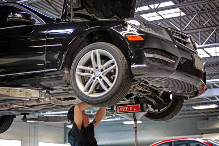 Includes removal of under car splash pans, change oil and filter. Perform Scheduled Inspection. Replace necessary filters as per inspection. Lubricate chassis points and top up fluid levels. Check operation of lights, adjust tire pressure, check belts and hoses. Tire rotation as required. Includes Battery Test and Visual Brake Inspection. Mobil 1 - Mercedes Benz Specification 229.5 / 229.3 using 0w40 5w40 available grades and 0w30 ESP 229.52 / 229.51 / 229.31